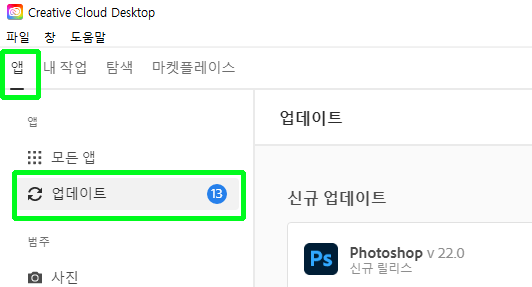 Adobe 앱 업데이트하는 방법 2. (모든 앱 일괄로 업데이트 진행하기) |