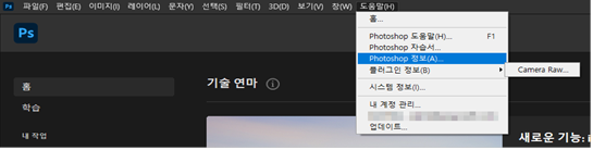 2. Photoshop CC 상단 메뉴에서 [도움말] -> [Photoshop 정보]를 선택합니다.